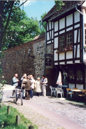 Wir besuchten zusammen mit meiner Mutter Tante Trude in Altentreptow. Hier speisen wir in der Gaststätte am Markt. Auf dem Rückweg fuhren wir über Teetzleben und wen treffen wir rein zufällig vor der Dorfkneipe in Woggersin? Günter Penner, den wir gerade in Leverkusen besucht hatten. |